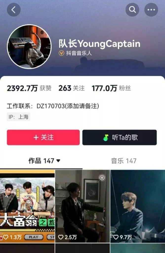 抖音177万粉丝男歌手队长YoungCaptain婚内出轨约炮粉丝塌房