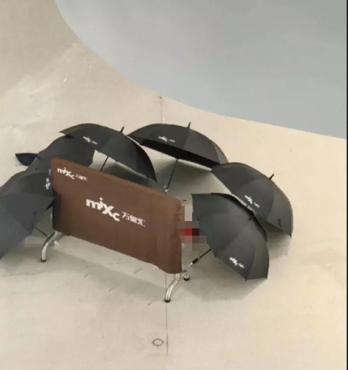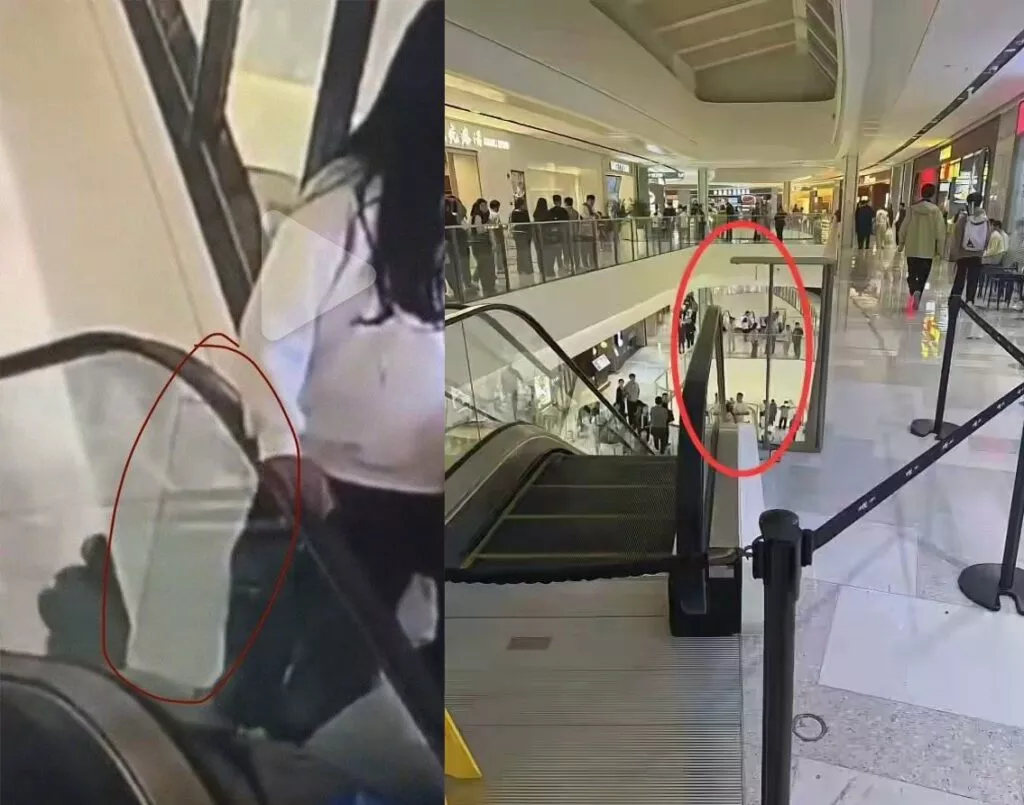 济宁万象汇商场四楼白衣女孩倚靠自动扶梯不慎坠楼事件