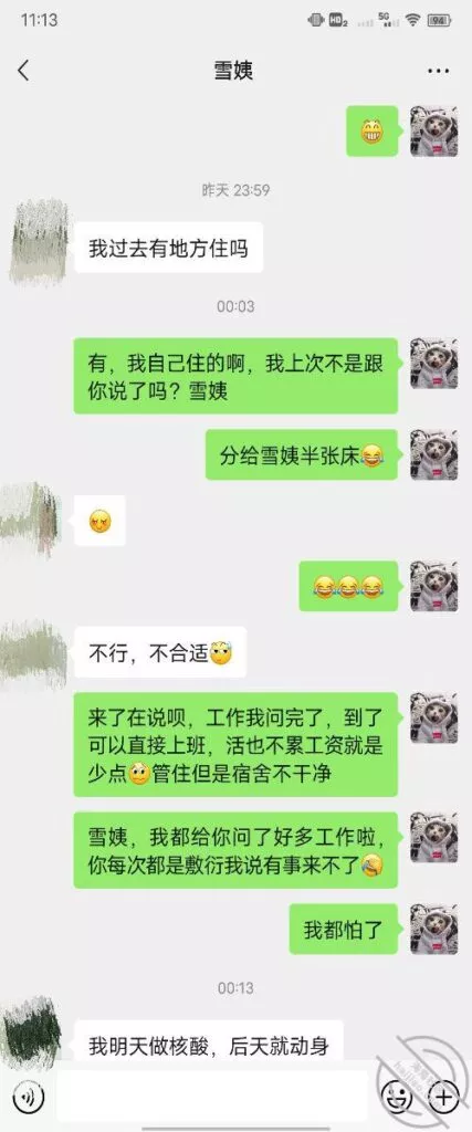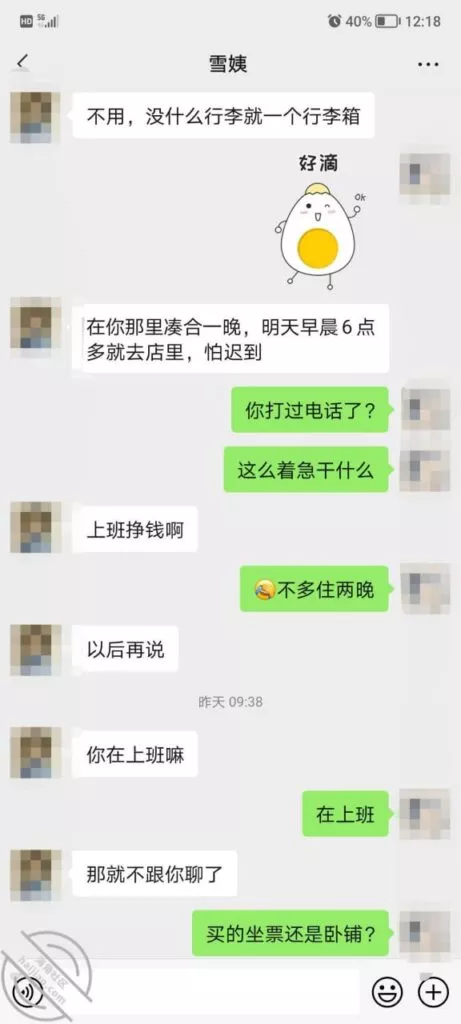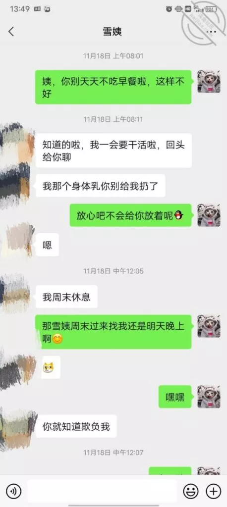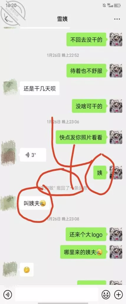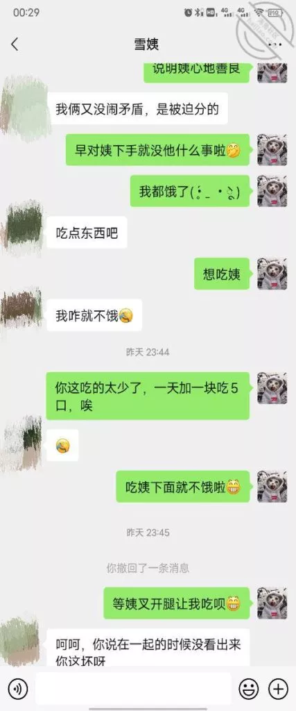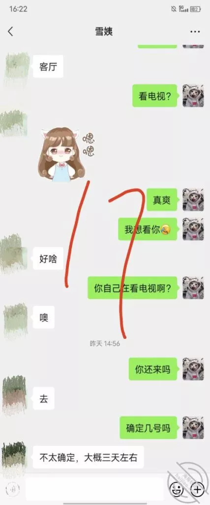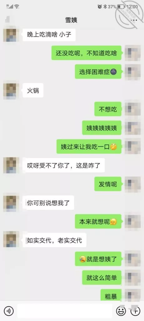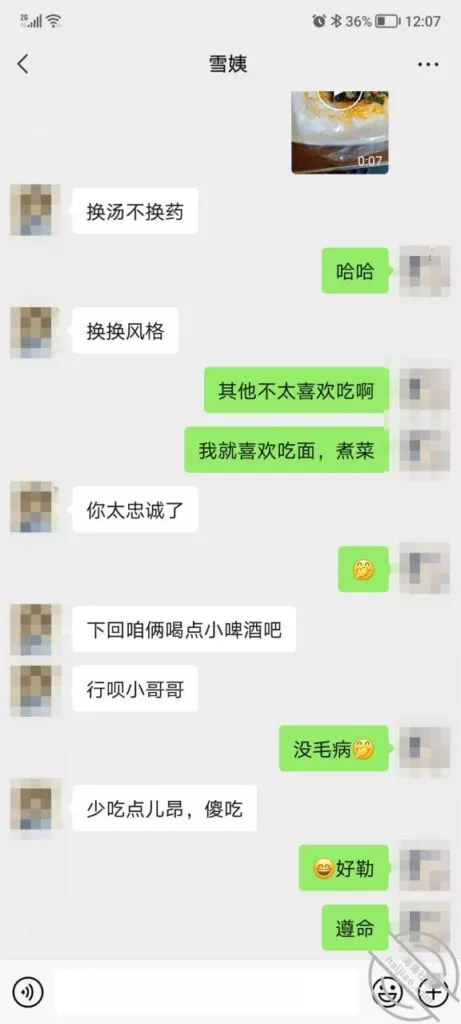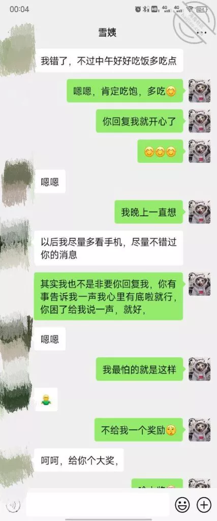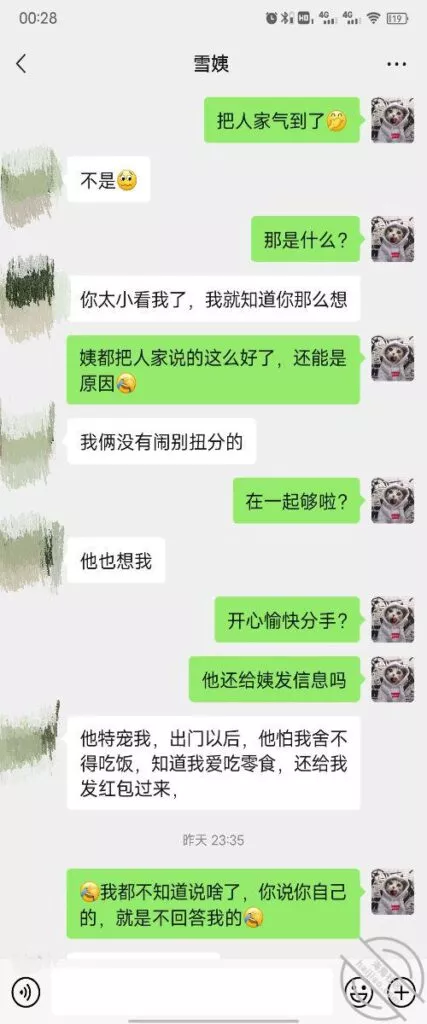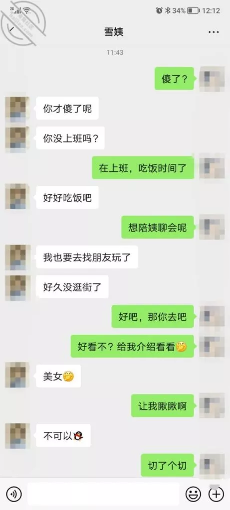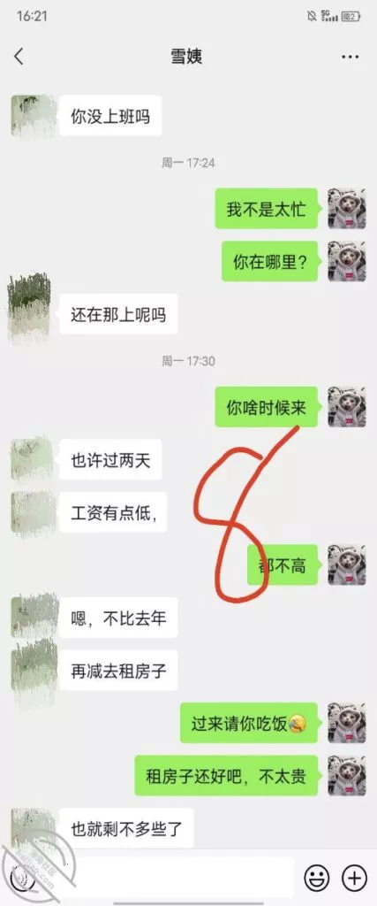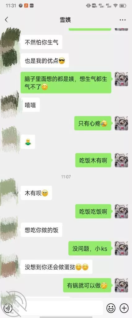 这是快过年的时候跟雪姨聊天的一部分聊天记录