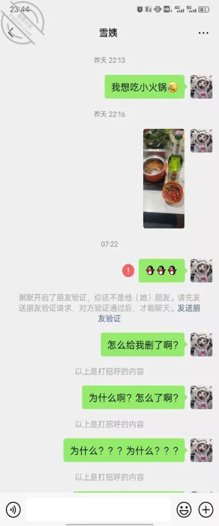 说我回复慢了,不怎么理他啦,就删我,够狠的
