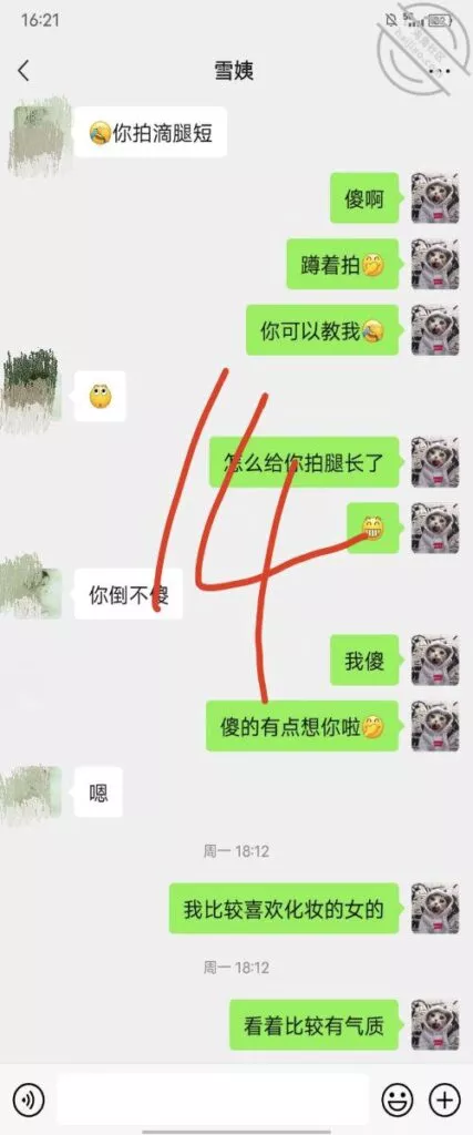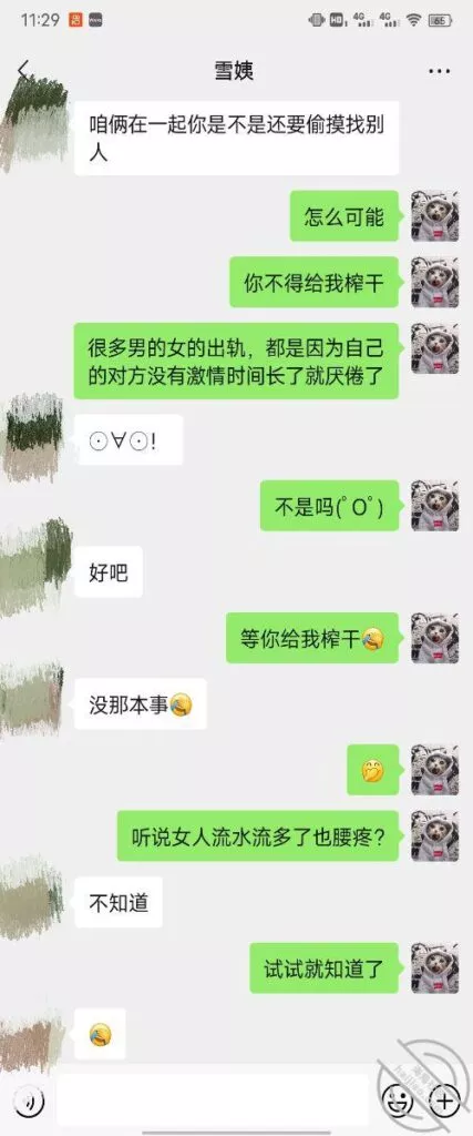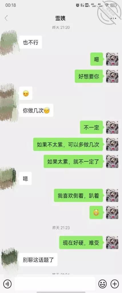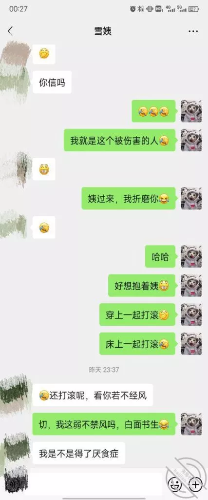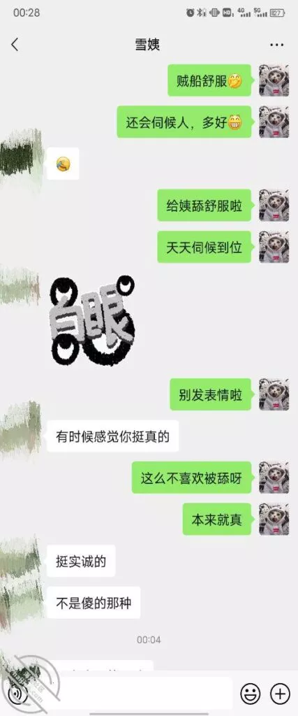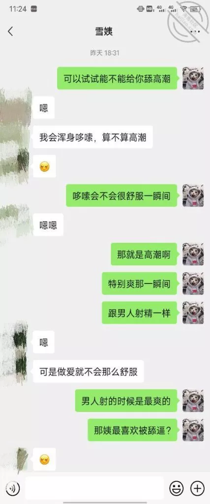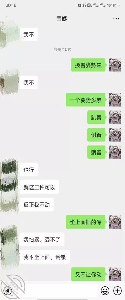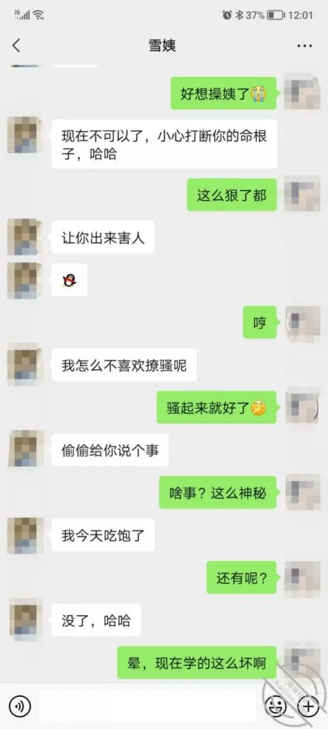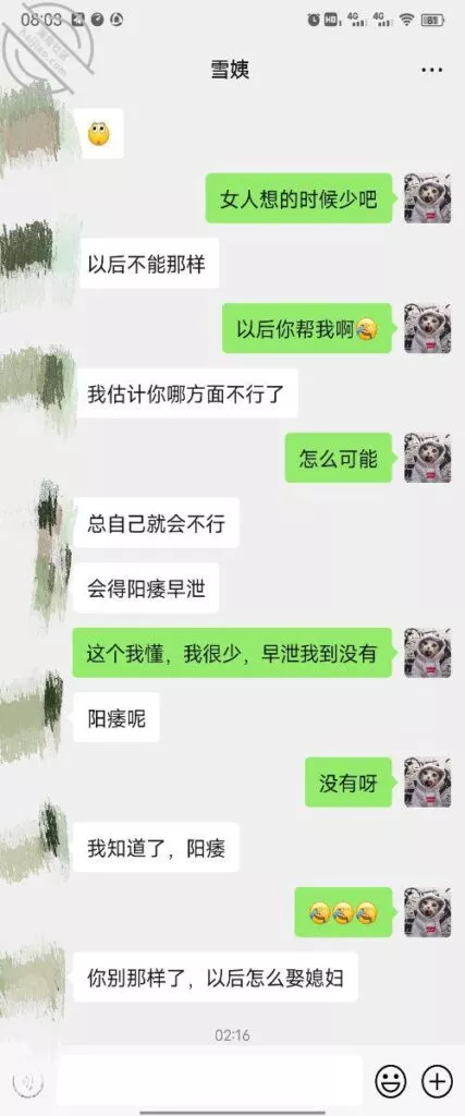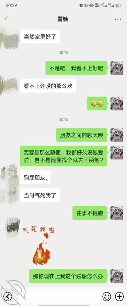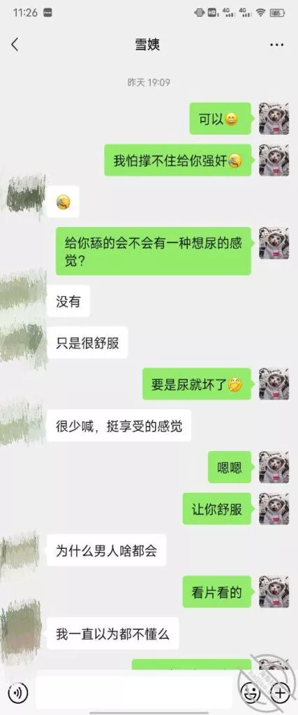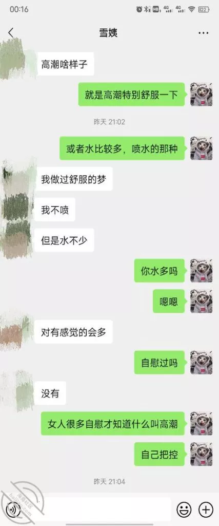 其实我忽然在想雪姨性欲这么强,每天要1-2次我这身体可撑不住啊 ,应了那句话,女人三十如狼四十如虎真是不假,,,自己都哭笑不得不说了,聊天记录都有了,自己看吧!