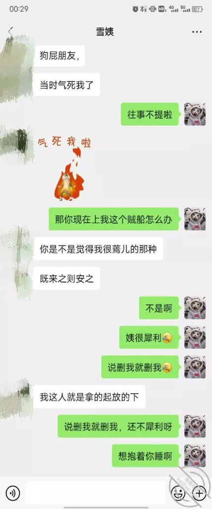 跟雪姨聊天气到她给我删了,不过后来又加上啦,她就是拿捏我