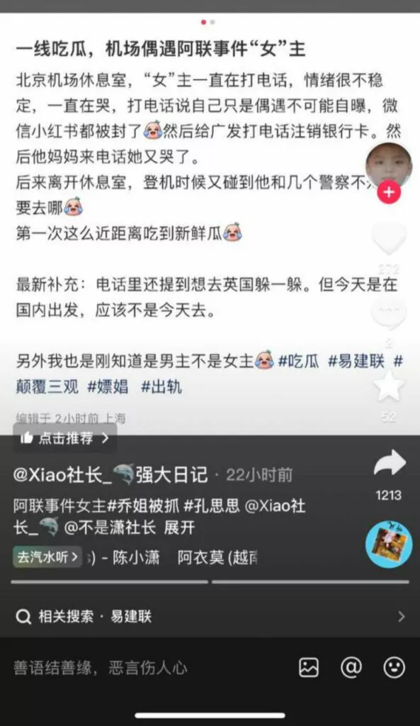 易建联嫖娼事件的女主角——京城的乔姐,近日在北京机场被警方拘留。有网友在同一天注册并称,听到乔姐有意前往英国暂时躲避。在她准备登机时,正好遇见了她和几名警察,不知道他们将前往何处。