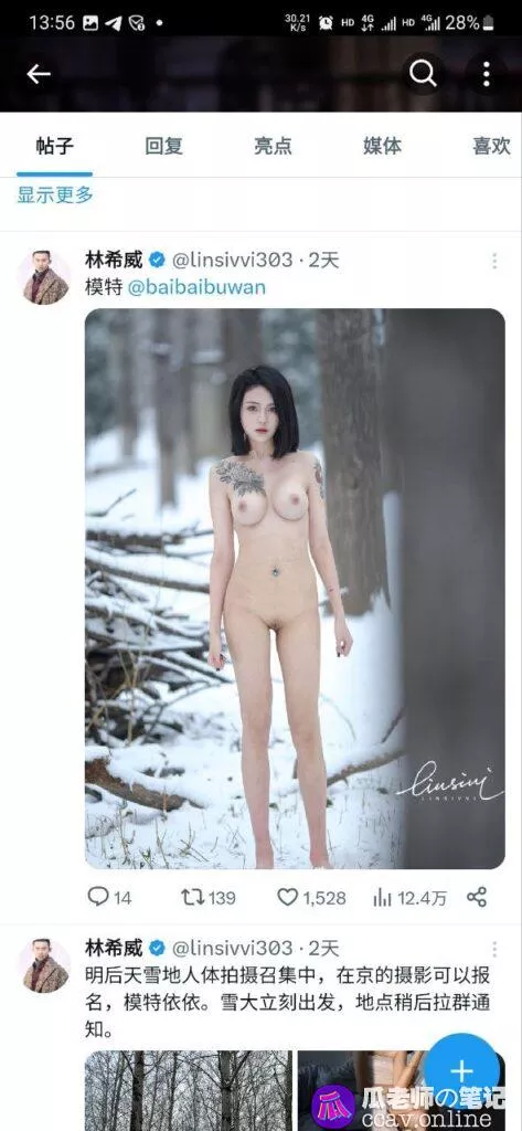 实际上,是一位推特的人体摄影师在雪场拍摄人体写真照片,并没有冻僵也没有什么野战,更没有什么泄漏视频,所以瓜友们不要上当了