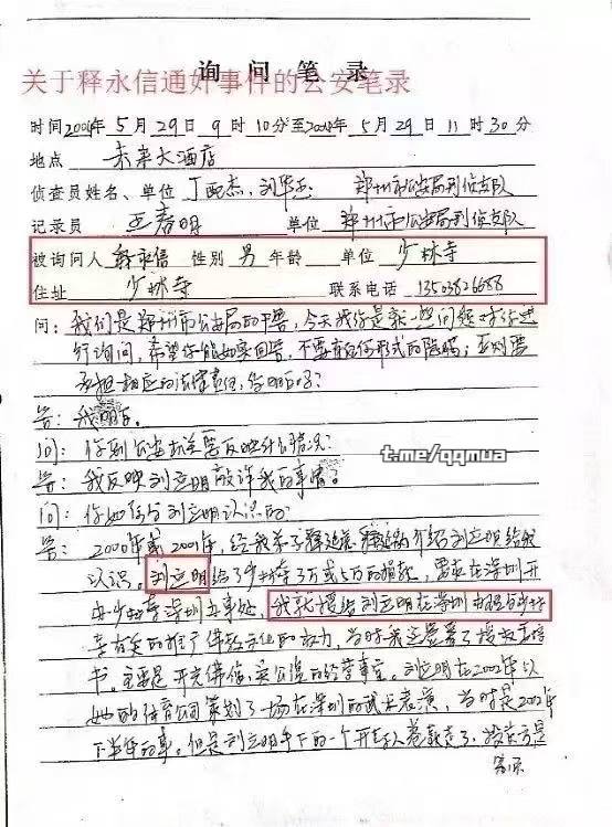 少林寺主持释永信大老婆被曝光?网传释永信通歼笔录供认多次嫖娼包养情妇