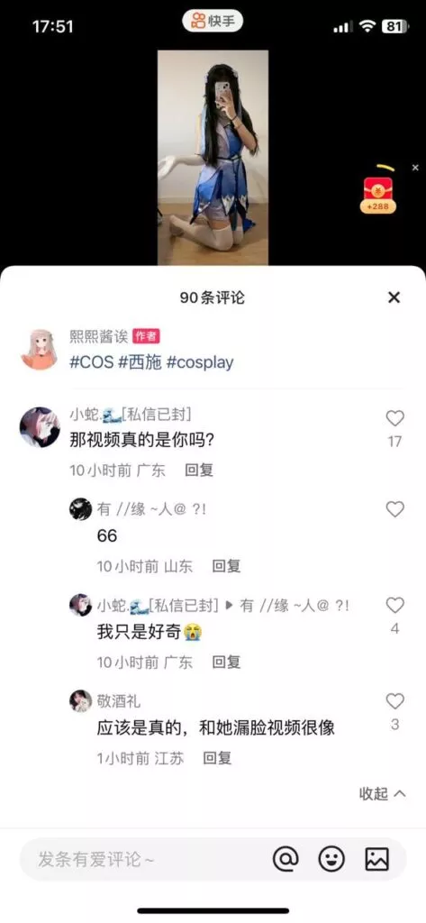 快手拥有19万粉丝的二次元清纯LL熙熙酱近日被曝出黑料。她曾以“福利姬”的身份成功转型,如今在快手上发布各种擦边视频,其中还曝光了大尺度的露面自愉视频。