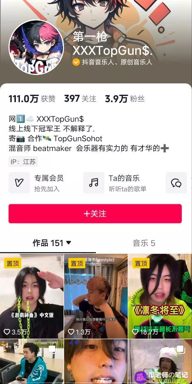抖音国服第一枪江苏rapperXXXTopGun&鸡儿比胳膊粗