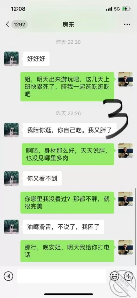 5.本以为房东是个闷搔,就约她出来吃饭,没想到唉