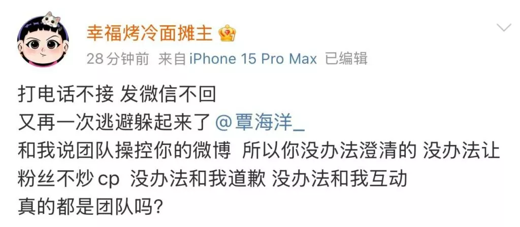 目前覃海洋本人方面暂未有任何生命,仅仅只有所属工作室做出回应