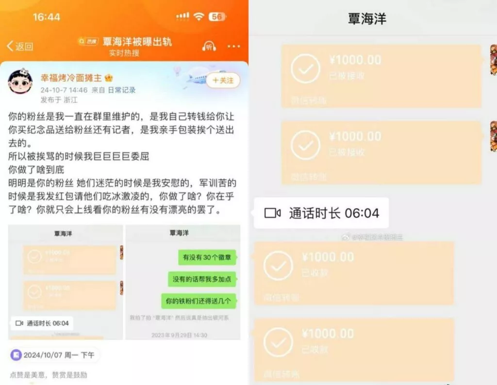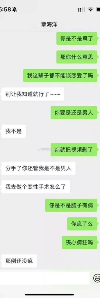 另有传言覃海洋自曝不雅视频,但目前多为拼接视频,女主甚至脸都不像,瓜贩子一点都不认真了。